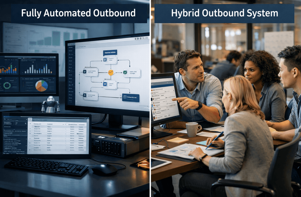 Automation scales outbound, but without human judgment it introduces risk. Learn why hybrid systems outperform fully automated outreach setups.